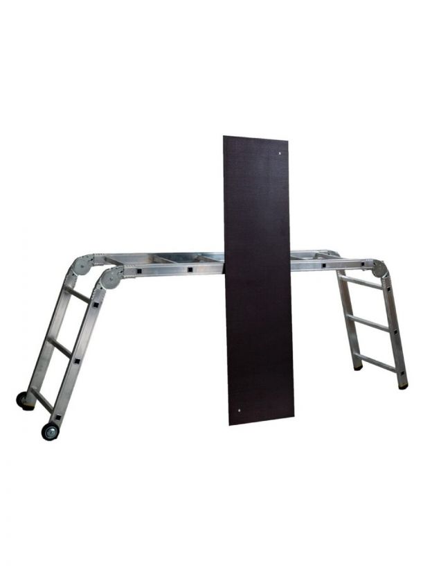 - водостойкий нескользящий настил из ламинированной фанеры легко снимается, при этом подмости трансформируются в шарнирную лестницу