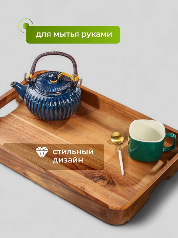 Закажите поднос из акации с ручками — получите стильный аксессуар для сервировки с доставкой. Гарантия на натуральное дерево и быстрый отклик на любые вопросы.