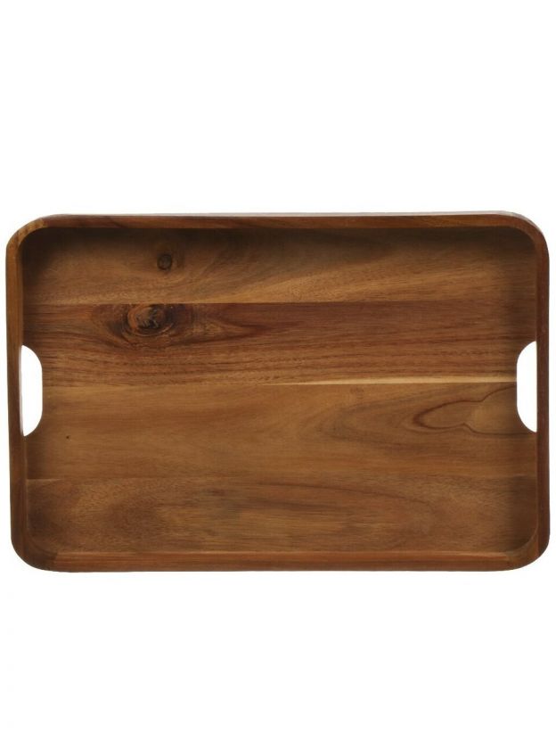 Поднос из акации 45х30 см с ручками — стильное решение для сервировки, удобный формат для дома и дачи, натуральное дерево без рисунка