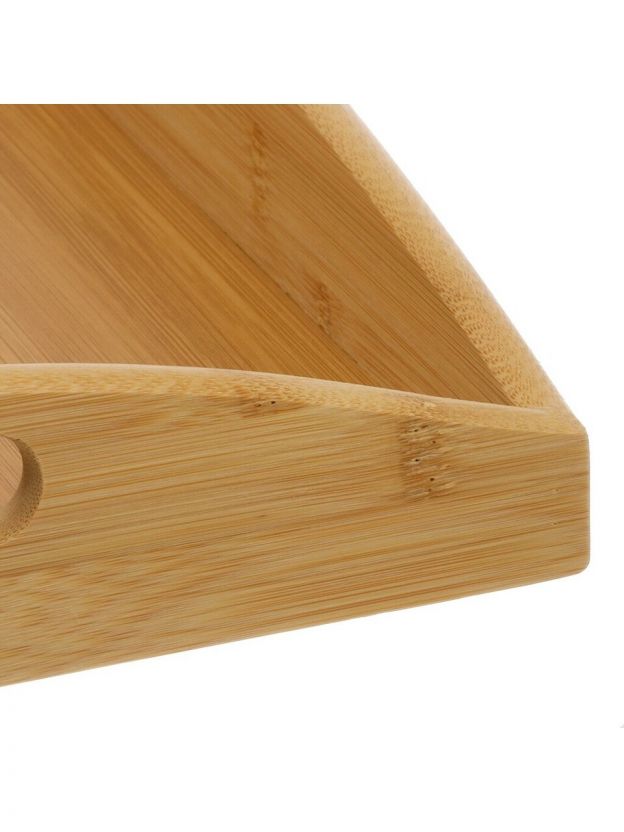 Чем отличается этот поднос от пластиковых и металлических аналогов? Он не скользит, не царапает столешницы и не нагревается, что делает его удобным для сервировки чая или кофе. Можно ли использовать поднос для сервировки на улице? Да, конструкция устойчива, а натуральный бамбук легко очищается влажной салфеткой. Подходит ли для подарка? Универсальный дизайн без рисунка впишется в любой интерьер — это практичный и стильный подарок для дома и дачи.
