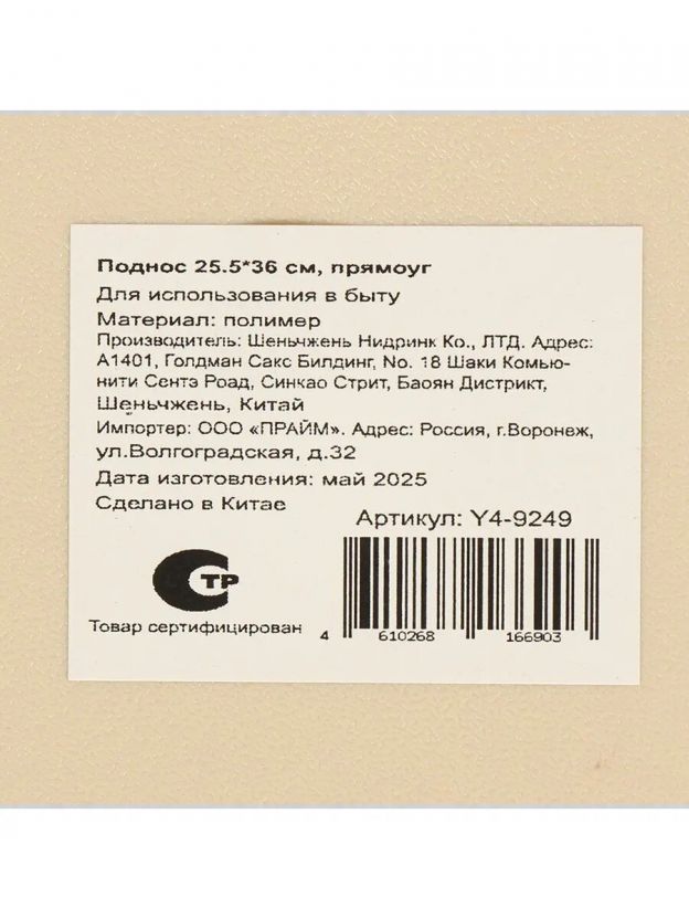 Универсальный пластиковый поднос 25.5х36 см: удобство сервировки дома и на даче, безопасен для посудомоечной машины, приятный бежевый цвет.