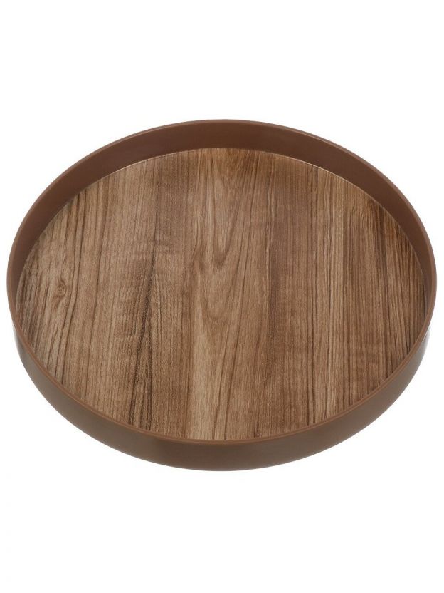 Поднос пластик, 32 см, круглый, коричневый, Y4-8590