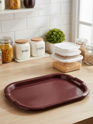 В отличие от аналогов из хрупких материалов, этот поднос прослужит долго даже при ежедневном использовании. Его лаконичный тёмно-коричневый цвет впишется в любой интерьер, а отсутствие рисунка делает его универсальным для любой сервировки. Если вы ищете, какой поднос выбрать для подарка на новоселье или дачу — обратите внимание на эту модель, сочетающую практичность и стиль.
