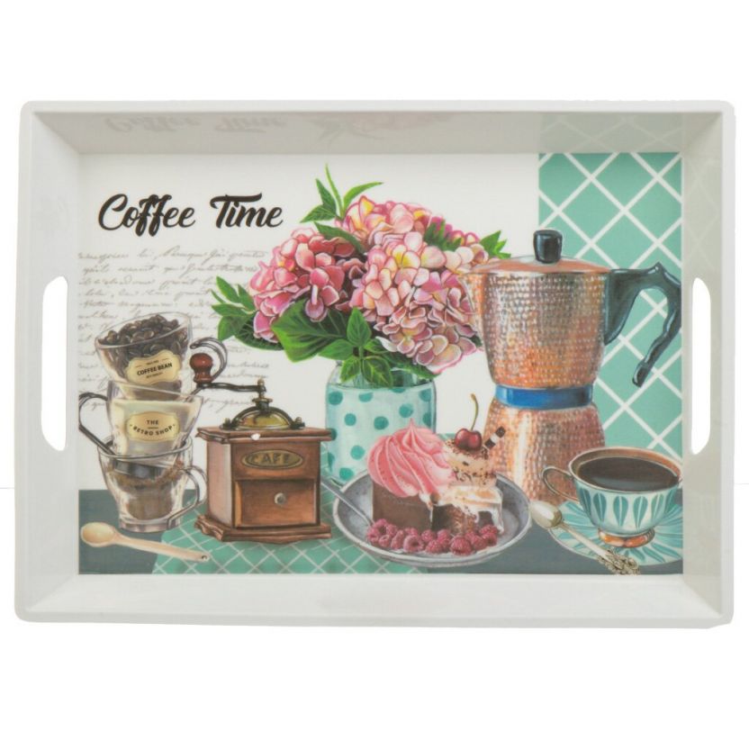 Поднос пластик, 43,5х32 см, прямоугольный, с ручками, Кофе, Y4-7871