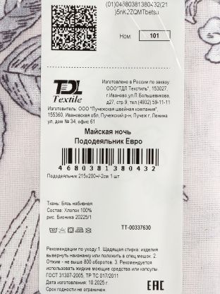• Евроразмер 200х215 см — подходит для большинства современных кроватей и одеял