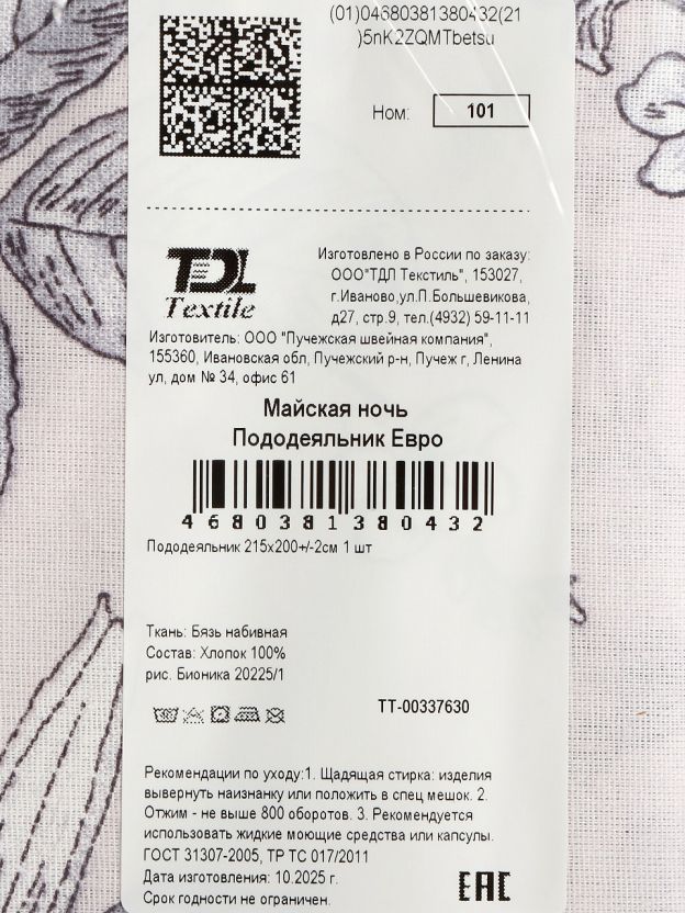 Ткань — 100% хлопок (бязь), плотная, гипоаллергенная, устойчива к частым стиркам и выцветанию.