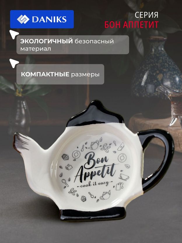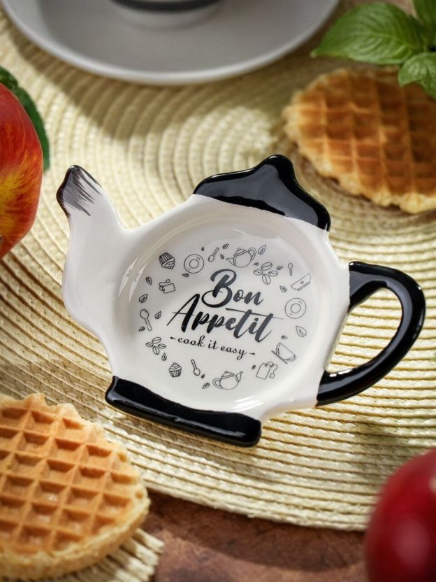 Подставка для чайных пакетиков, изготовленная из высококачественной керамики, порадует вас оригинальностью и дизайном. Подставка выполнена в форме чайничка и оформлена рисунком. С помощью такой подставки ваша столешница останется чистой.