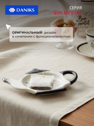 Подставка для чайных пакетиков, доломит, фигурная, 12х8.4 см, Daniks, Бон Аппетит