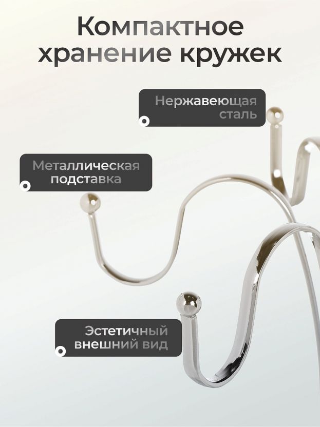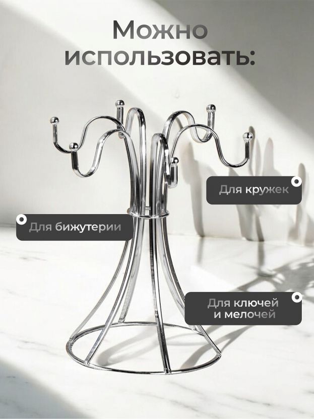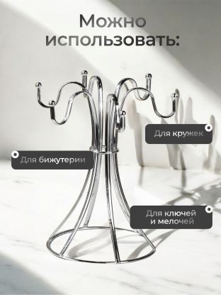 Подставка для кружек, металл, фигурная, 6 крючков, Y4-8024