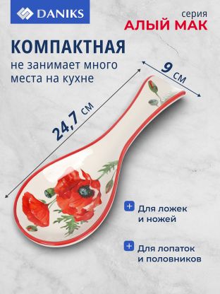 Подставка для ложки, доломит, фигурная, 24.7х9 см, Daniks, Алый мак