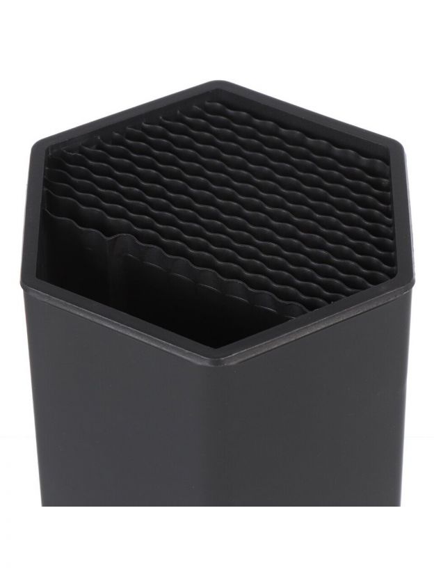 - Конструкция подставки разработана таким образом, чтобы вмещать ножи и другие кухонные принадлежности любых размеров и материалов - от традиционных металлических до современных керамических.