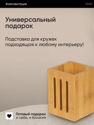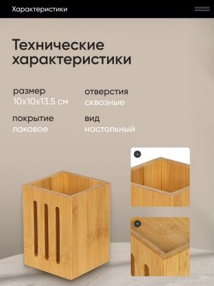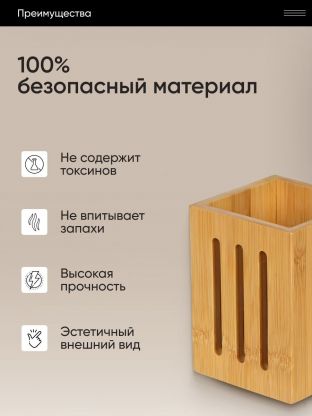 Стильный органайзер с лаконичным дизайном выполнен из экологичного материала - бамбука. Благодаря текстуре натурального дерева с легкостью впишется в любой интерьер и придаст атмосферу особого уюта. Подойдет для различных кухонных мелочей и столовых приборов.