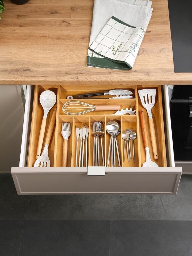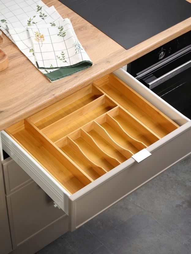- Удобство в использовании: размеры 34.5х50.8х44.5х6.4 см позволяют разместить все необходимые столовые приборы, обеспечивая легкий доступ к ним.