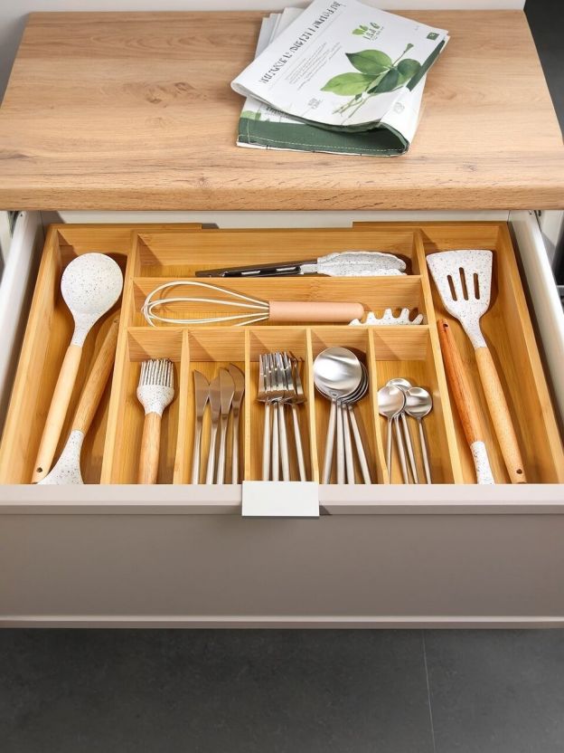 Ищете идеальное решение для организации столовых приборов? Подставка для столовых приборов из бамбука станет неотъемлемой частью вашей кухни, добавляя ей стиль и функциональность. Изготовленная из экологически чистого материала, она сочетает в себе природную красоту и практичность. Этот аксессуар не только упрощает хранение, но и помогает поддерживать порядок на кухне, что особенно важно для любой хозяйки.