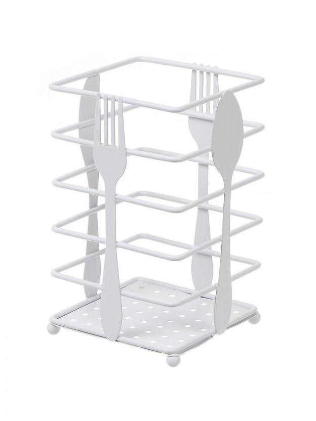 Подставка для столовых приборов, металл, квадратная, 10х10х16.5 см, белая, Вилка-ложка, Y4-6214