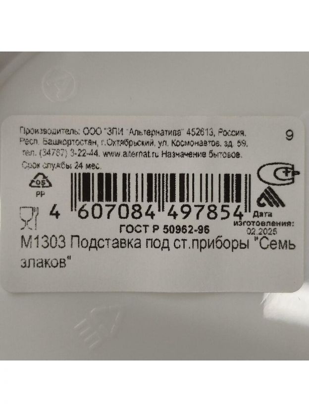 Подставка для столовых приборов, пластик, в ассортименте, Альтернатива, 7 злаков, М1303