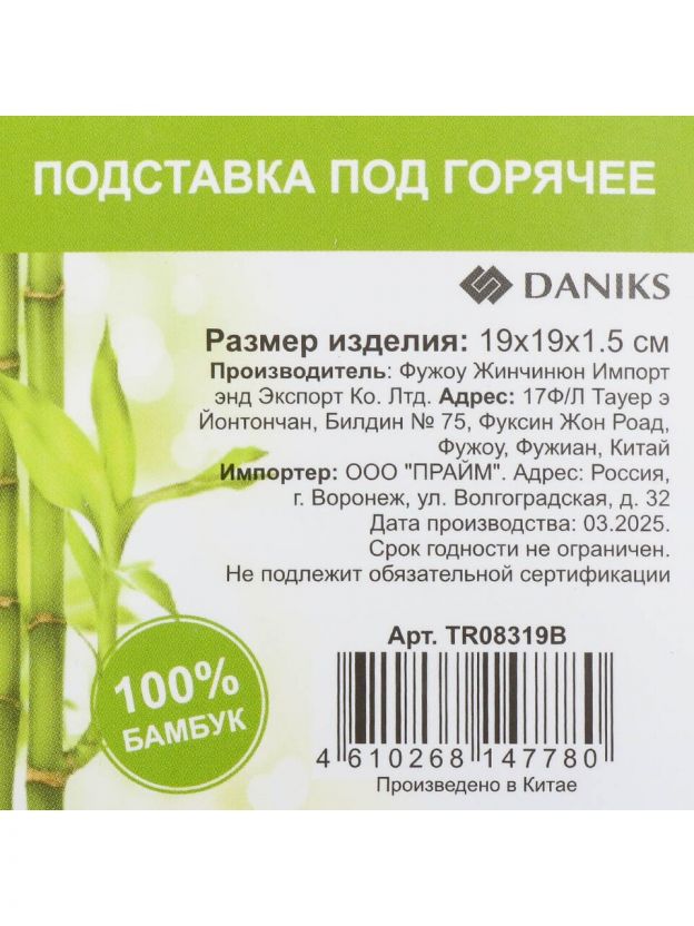 Бамбуковая подставка под горячее Daniks 19х19 см: натуральная защита стола, долговечность, универсальный размер для дома и дачи. Купите выгодно!