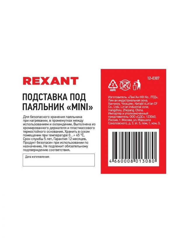 Подставка под паяльник Rexant Mini 12-0307 — компактное и удобное решение для хранения паяльника во время работы. Благодаря минималистичному дизайну и надежности, аксессуар идеально впишется в мастерскую или домашний уголок для рукоделия. Покупка обеспечивает аккуратность рабочего места и продлевает срок службы инструмента.