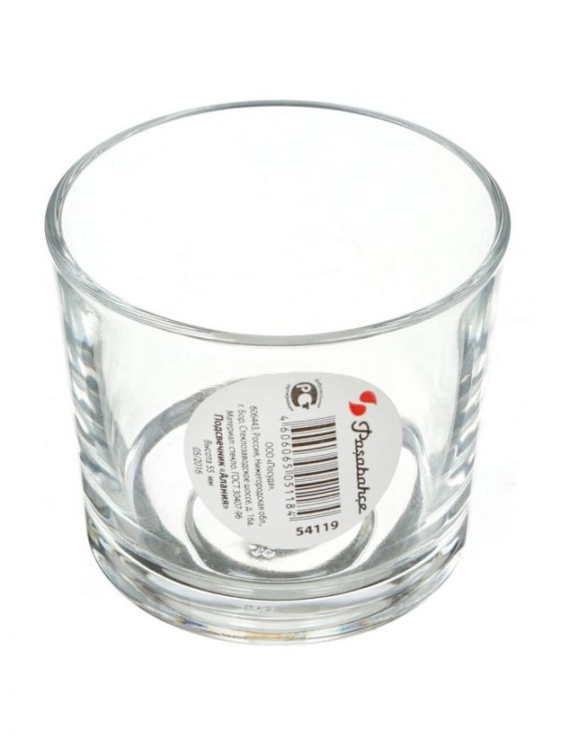 Диаметр отверстия — 5.5 см. Идеально для стандартных чайных свечей и свечей-таблеток. Стекло выдерживает высокие температуры.