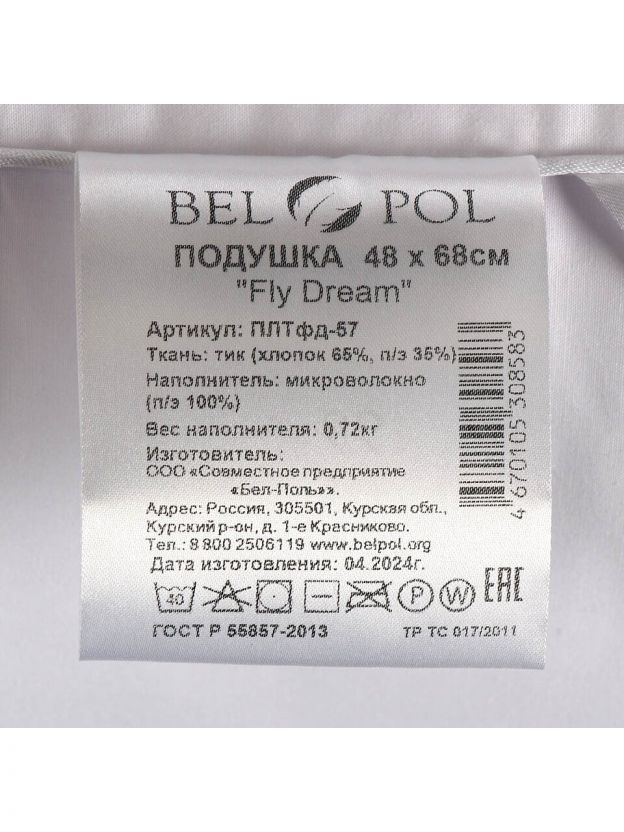 Подушка 48 х 68 см, микроволокно, 100% полиэстер, Fly Dream, 65% хлопок, 35% полиэстер, средняя, Бел-Поль, ПЛТфд-57