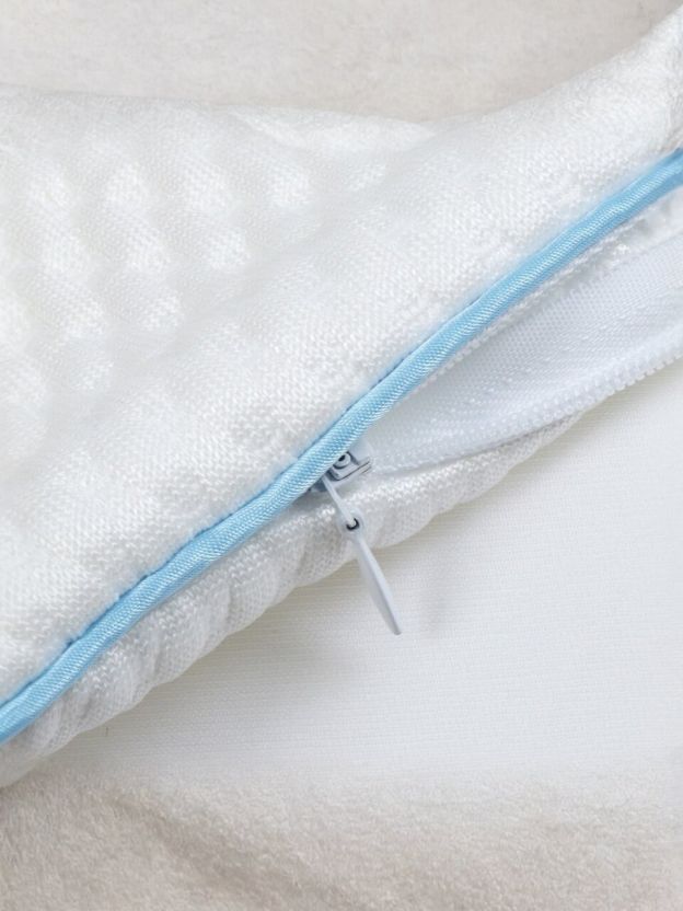 Внутри — пенополиуретан с эффектом памяти, который обеспечивает среднюю степень поддержки и не вызывает аллергии.