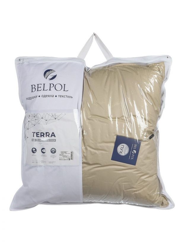 Премиальная подушка 70х70 см Terra Бел-Поль: гусиный пух, трехкамерная конструкция, чехол 100% хлопок — комфорт и поддержка для здорового сна