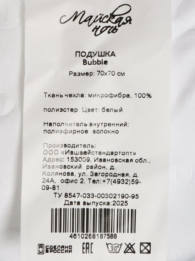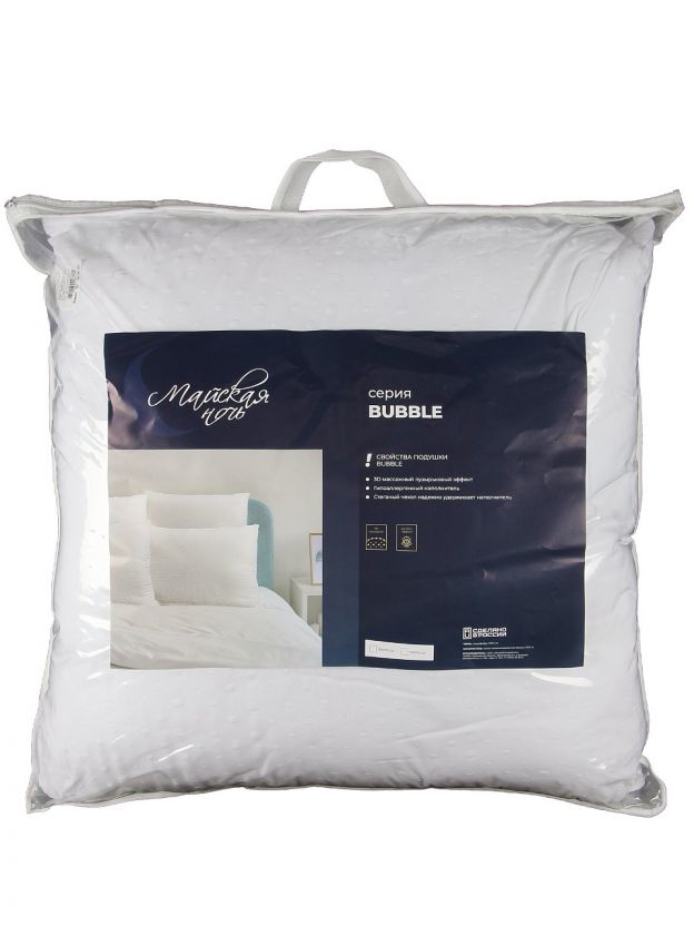 Подушка 70 х 70 см Bubble от «Майская ночь» с гипоаллергенным полиэстером и чехлом из микрофибры — комфортный выбор для сна дома, на даче или в подарок.