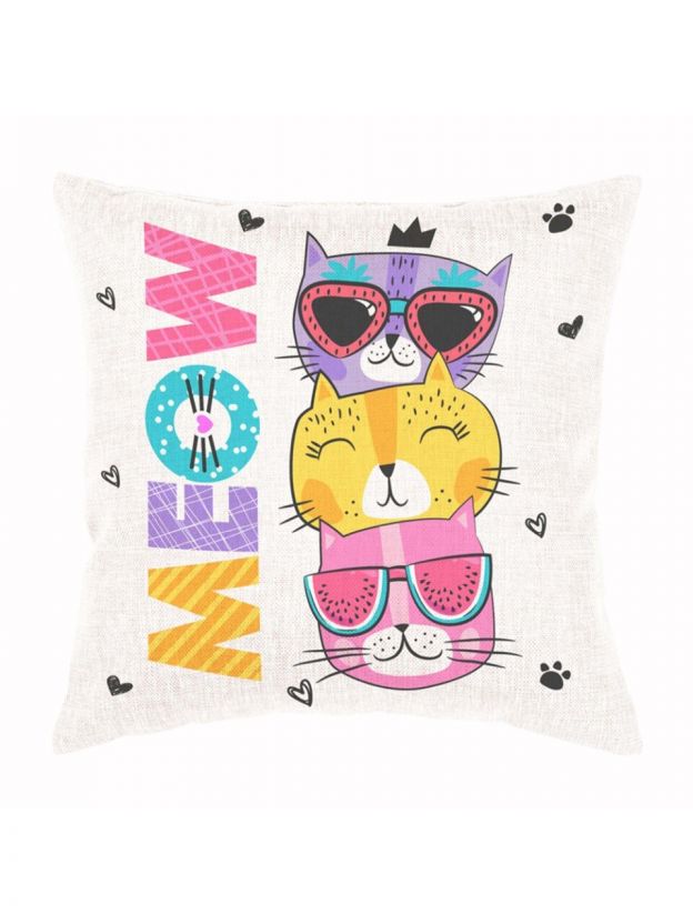 - Оригинальный принт «Meow» — добавляет индивидуальность интерьеру, подходит для детской, гостиной и спальни