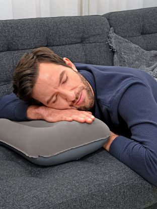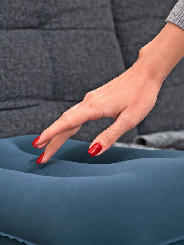 Вы можете самостоятельно регулировать габариты и жесткость подушки, когда надуваете изделие. Сдутую модель можно хранить на полке шкафа.