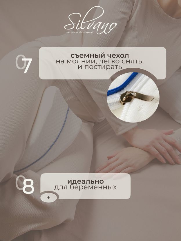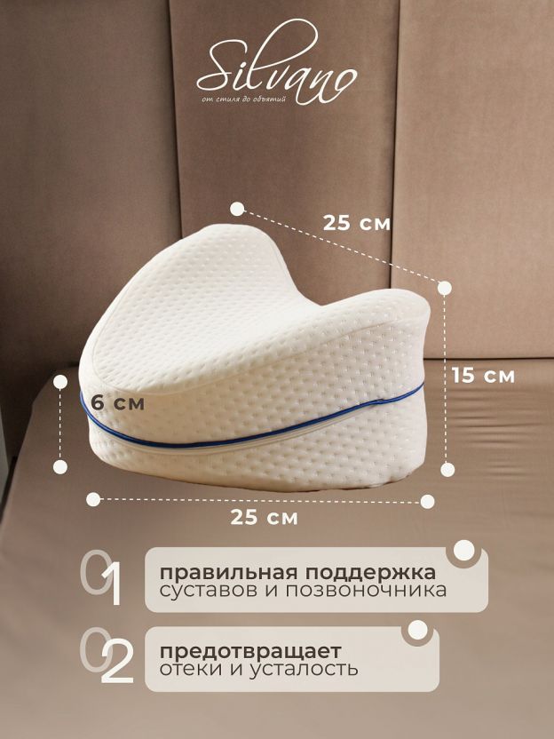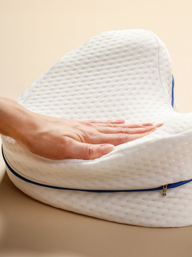 Подушку размещают между или под коленями во время сна или отдыха, чтобы снизить нагрузку на суставы и улучшить кровообращение. Эффект памяти позволяет подушке принимать форму ног, обеспечивая максимальный комфорт.