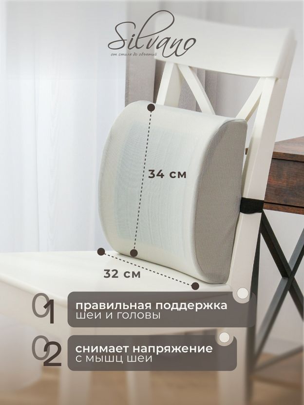 Данная модель имеет размеры 32x34 см, подходит для взрослых и подростков, оптимальна для поддержки спины.
