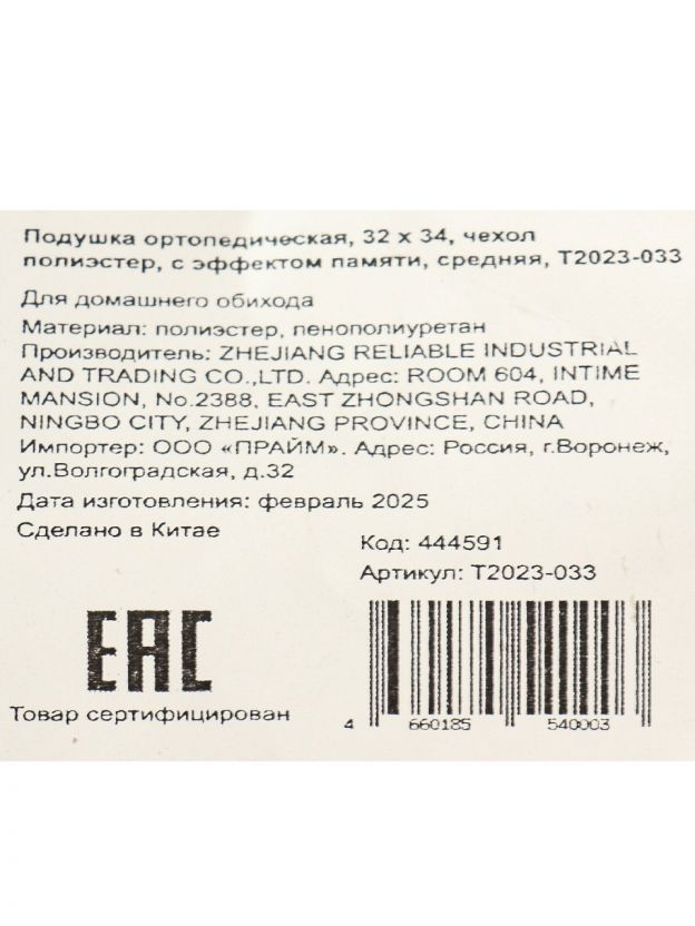 Ортопедическая подушка с эффектом памяти 32x34 см — идеальный выбор для снятия боли в спине и поддержки позвоночника. Подходит для дома, дачи и подарка.