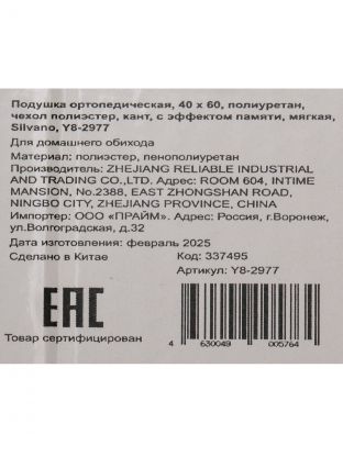 • Размер 40x60 см и наполнитель из пенополиуретана обеспечивают мягкую поддержку, долговечность и гипоаллергенность.