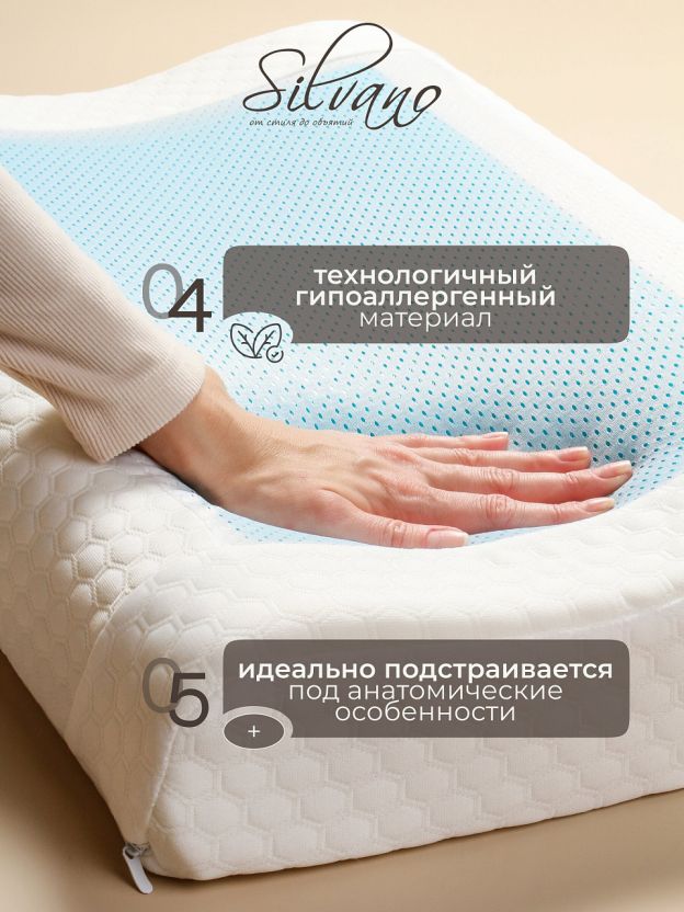 Ортопедическая подушка Silvano 40x60 с эффектом памяти: мягкая поддержка для здорового сна, гипоаллергенный чехол, оптимальная высота для комфорта шеи и спины.