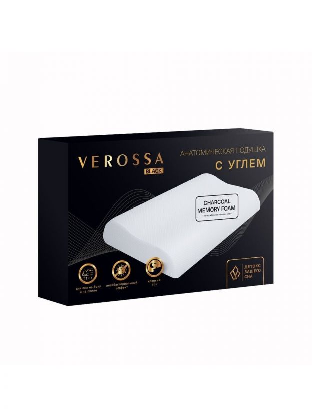 Ортопедическая подушка Verossa 40x60 см с эффектом памяти и углем: мягкая поддержка, свежесть сна и премиум-материалы для здоровой осанки.