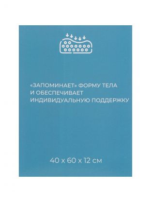 - Анатомическая поддержка — инновационный наполнитель с эффектом памяти точно повторяет контуры головы и шеи, снижая нагрузку на позвоночник