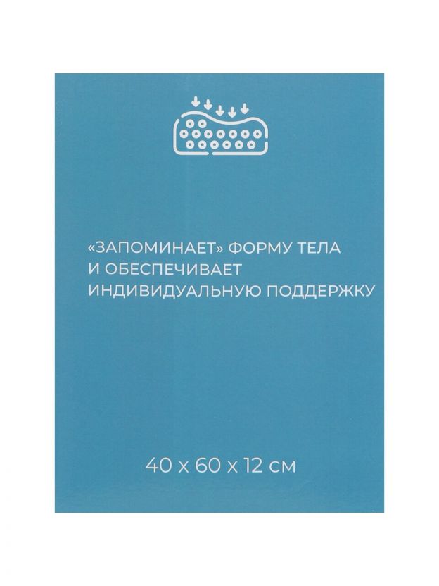 В подушке применяется современный гипоаллергенный наполнитель с эффектом памяти, устойчивый к пыли и запахам. Размер 40x60x12 см оптимален для большинства пользователей.