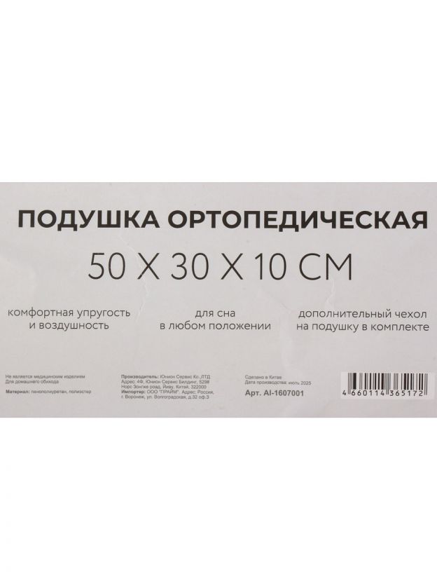 Ортопедическая подушка с эффектом памяти 50x30x10 см — мягкая поддержка для здорового сна, оптимальный выбор для дома, дачи и подарка. Обеспечьте комфорт и профилактику боли в шее уже сегодня.