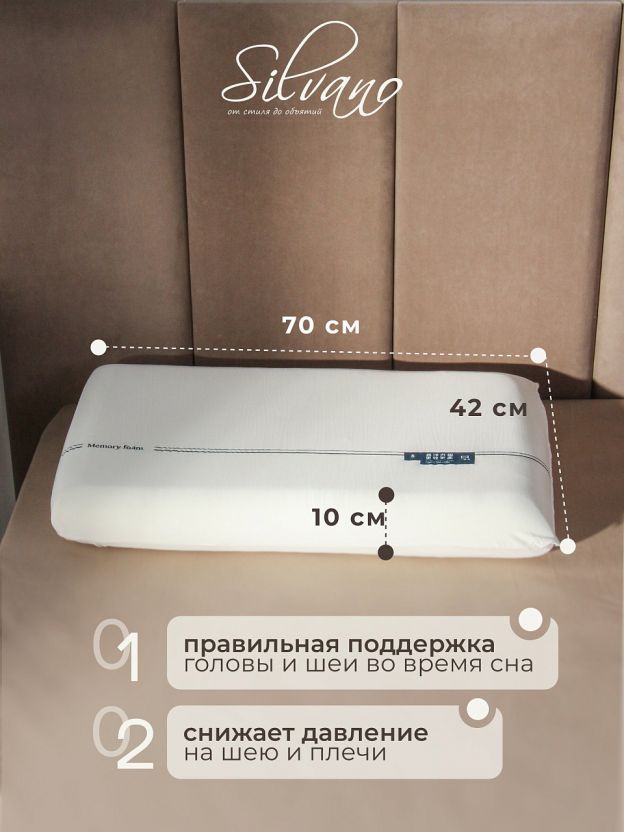 Ортопедическая подушка 70х42х10 см с эффектом памяти: комфортный сон без боли в шее и спине, идеальна для дома и дачи. Доставка — сегодня.