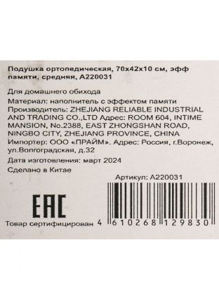 Ортопедическая подушка с эффектом памяти (memory foam) — выбор тех, кто заботится о здоровье шеи и качестве сна. Благодаря среднему уровню поддержки и высоте 10 см, изделие подходит для сна на боку и спине, а прямоугольная форма обеспечивает правильное положение головы. Если вы ищете, какую ортопедическую подушку выбрать для профилактики боли в шее или как подобрать подушку для комфортного сна, обратите внимание на эту модель: она адаптируется под контуры тела и снижает давление на мышцы.