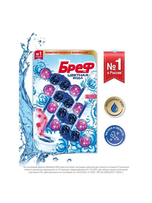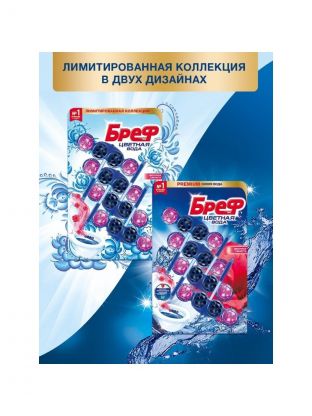Бреф Колор Актив - подвесной туалетный блок с технологией нейтрализации, которая создает защитный барьер на пути неприятных запахов.