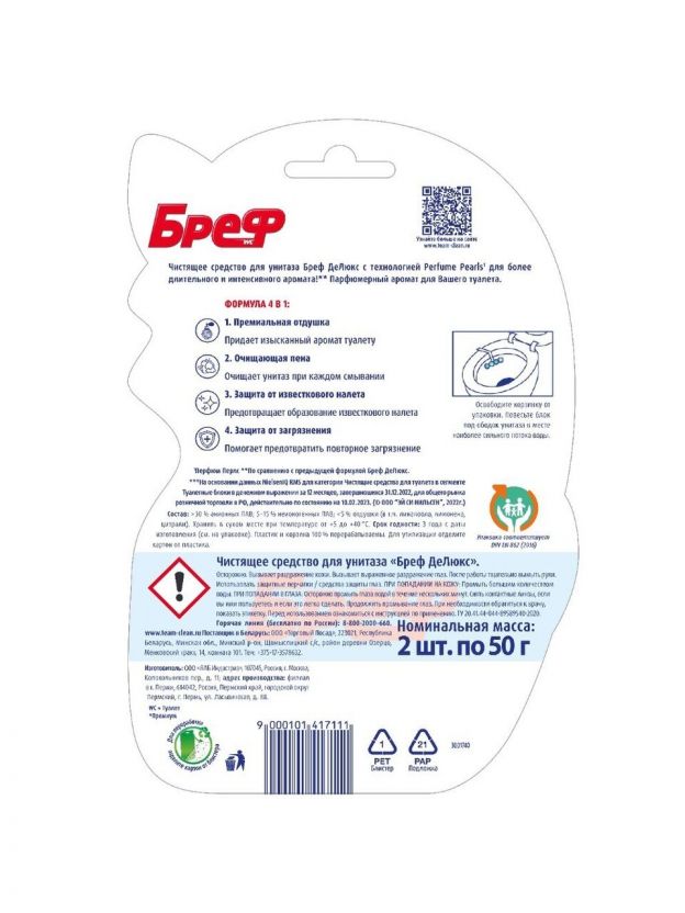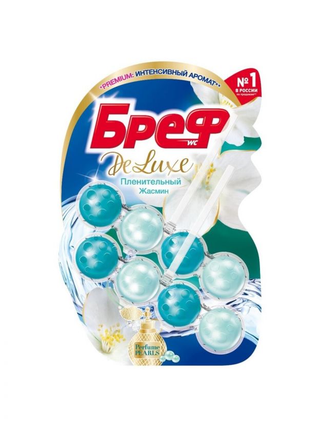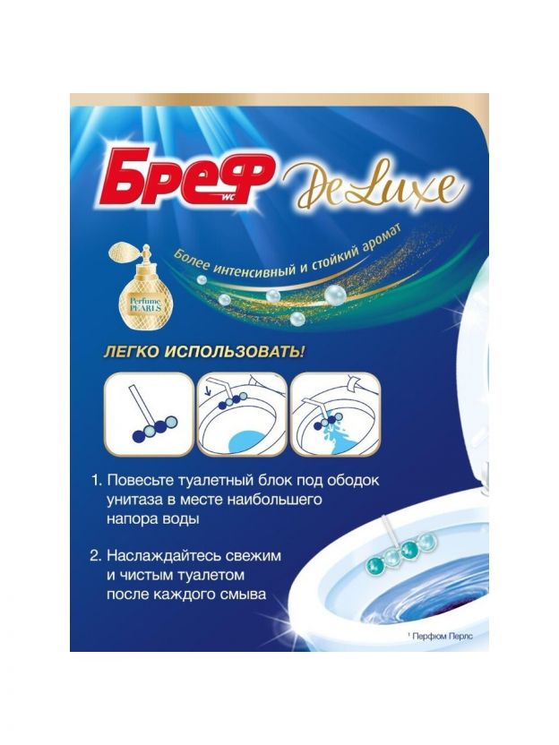 Бреф Делюкс — подвесной туалетный блок для унитаза с технологией Перфюм Перлс для более длительного и интенсивного аромата!