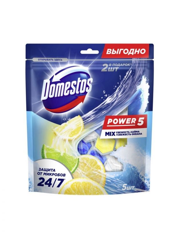 Подвеска для унитаза Domestos, Свежесть лайма и Свежесть океана, 5 шт, 50 г, Power 5