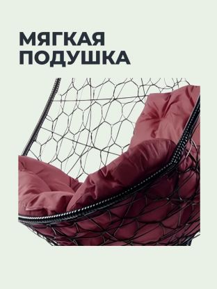 Подвесное кресло 1-мест, 83х70х186 см, Овал, черное, ротанг, подушка бордовая, 11140402