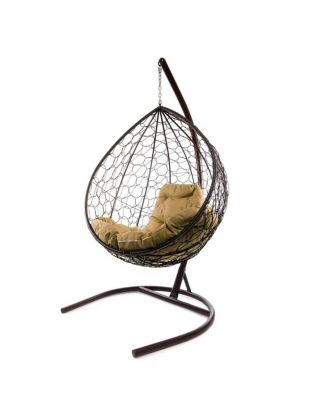Подвесное кресло 1-мест, 98х72х186 см, 120 кг, Капля, коричневое, ротанг, подушка бежевая, 11020201