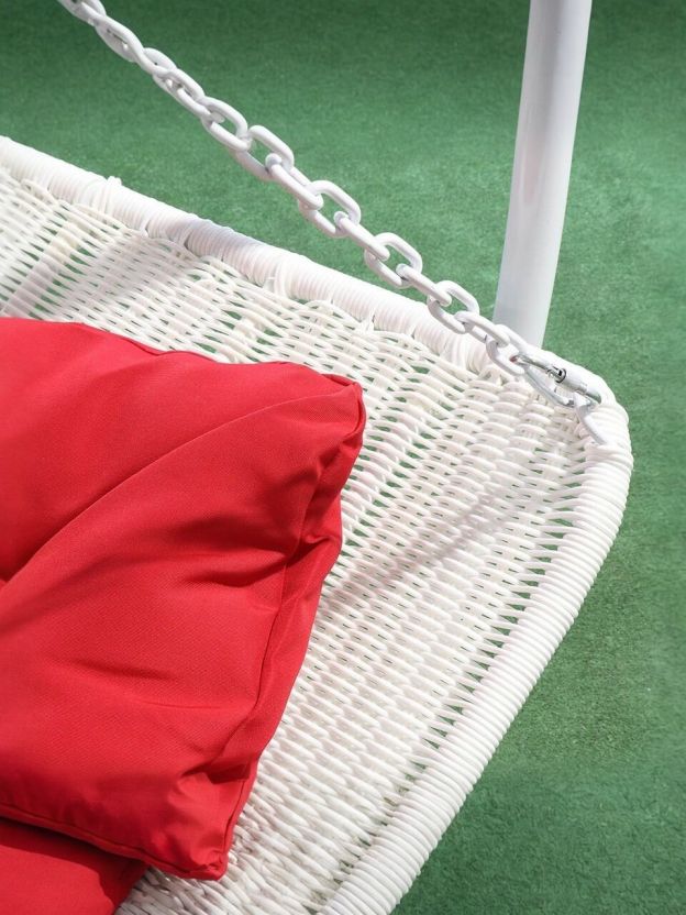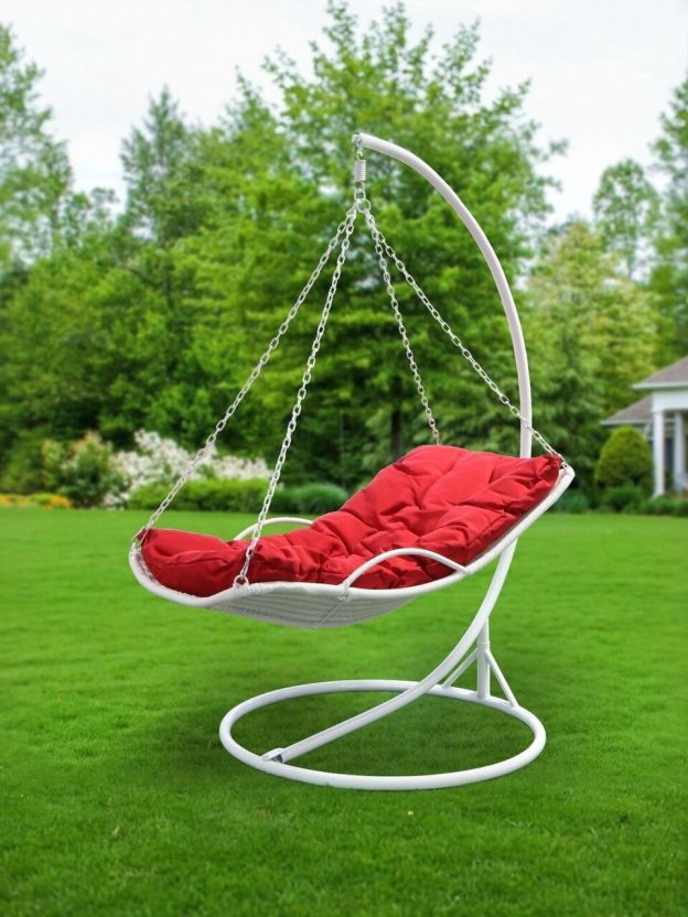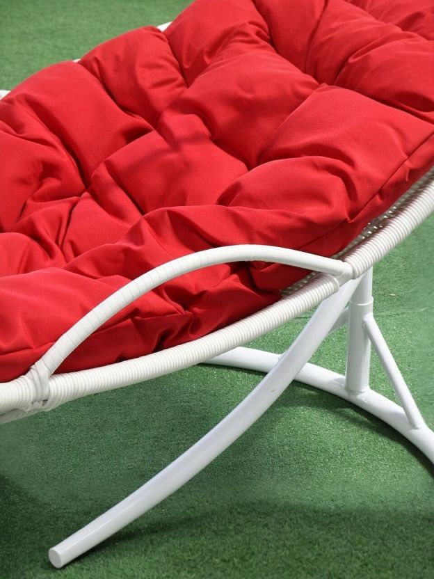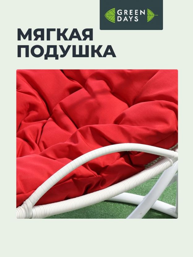 Подвесное кресло Кокон, 1-мест, 110х86х198 см, 150 кг, Green Days, белое, ротанг, подушка красная, H073-19-1850