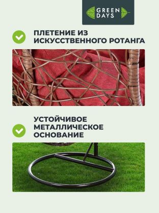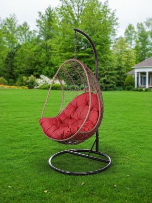 Подвесное кресло Кокон, 1-мест, 67х92х198 см, 100 кг, Green Days, черный/коричневое, подушка бордово-красная, TZF-H049-C200H-16
