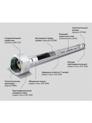 - материал оплетки нержавеющая сталь с полимерным покрытием;