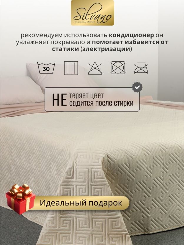Покрывало 2-спальное, 200х180 см, 100% полиэстер, стеганое, Silvano, Ультрасоник Греция, кремовое
