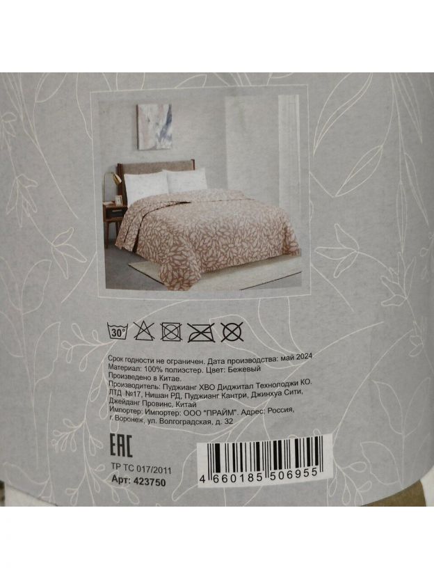 Уход: бережная стирка при температуре не более 40 °С, не рекомендуется отбеливать и подвергать сухой чистке.